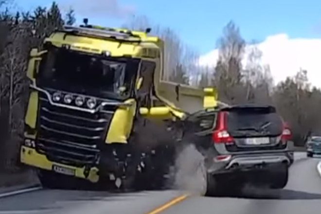 The truck, loaded with steel, toppled onto the opposite side of the road, landing on the Volvo SUV traveling in the opposite direction. The impact of the steel container crushed the vehicle, killing all six family members inside. The accident has raised concerns about road safety, particularly the risks posed by sudden braking and loss of control on highways.